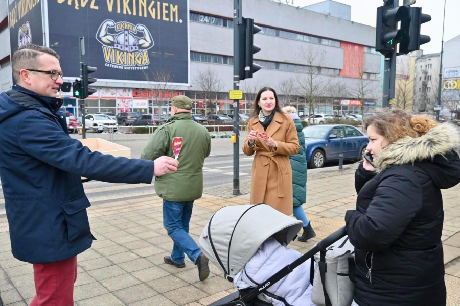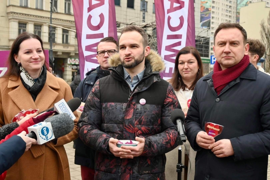 "Dzisiaj fajne, radosne święto - Walentynki. Ludzie się kochają, mamy nadzieję, że kochają się każdego dnia, ale dzisiaj w sposób szczególny jest emanacja tej miłości i dzisiaj Lewica, Nowa Lewica, Partia Razem też umilają łodzianom życie. Rozdajemy lizaki, rozdajemy krówki, ale przy okazji Walentynek chcemy też powiedzieć o jednym, bardzo ważnym problemie, z którym borykają się głównie młodzi obywatele naszego kraju. To jest brak dostępności własnego mieszkania. To jest ta zmora, która trapi Polskę od kilkudziesięciu lat, z którą żaden rząd nie był w stanie sobie poradzić. Młodzi ludzie często mieszkają z rodzicami, brakuje w Polsce dwóch milionów mieszkań. Wynajem mieszkania to dobro luksusowe, a wzięcie kredytu, w tych czasach, to zarobki na poziomie 10-15 tys. zł, żeby w ogóle myśleć o jakimkolwiek kredycie na jakiekolwiek mieszkanie. My jako Lewica zawsze uważaliśmy, że mieszkanie jest prawem, a nie towarem i mówimy to bardzo wyraźnie i bardzo jednoznacznie" - podkreślał poseł Tomasz Trela.